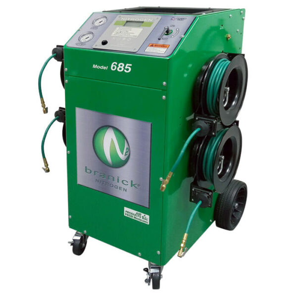 Our mobile systems deliver speed and purity while allowing you to stay mobile. The 675 comes with a 30-gallon tank, and it can convert a passenger vehicle without being tethered to an air source. Four hoses with clip chucks are standard, though there are six conversion ports capable of handling duallies or spares. The 675 is the ideal solution for large passenger and light truck facilities that need a little more output while having mobility. If you want to keep your mobile system mobile, but you also want nitrogen at your tire changing location, our mobile units have an auxiliary port on the back so you can fill any size storage tank for extra capacity. It’s like having two systems for the price of one. Finally, because of its PRISM Membrane, our systems also act as an air dryer, which means our systems produce a more consistent purity over the lifespan of the machine.